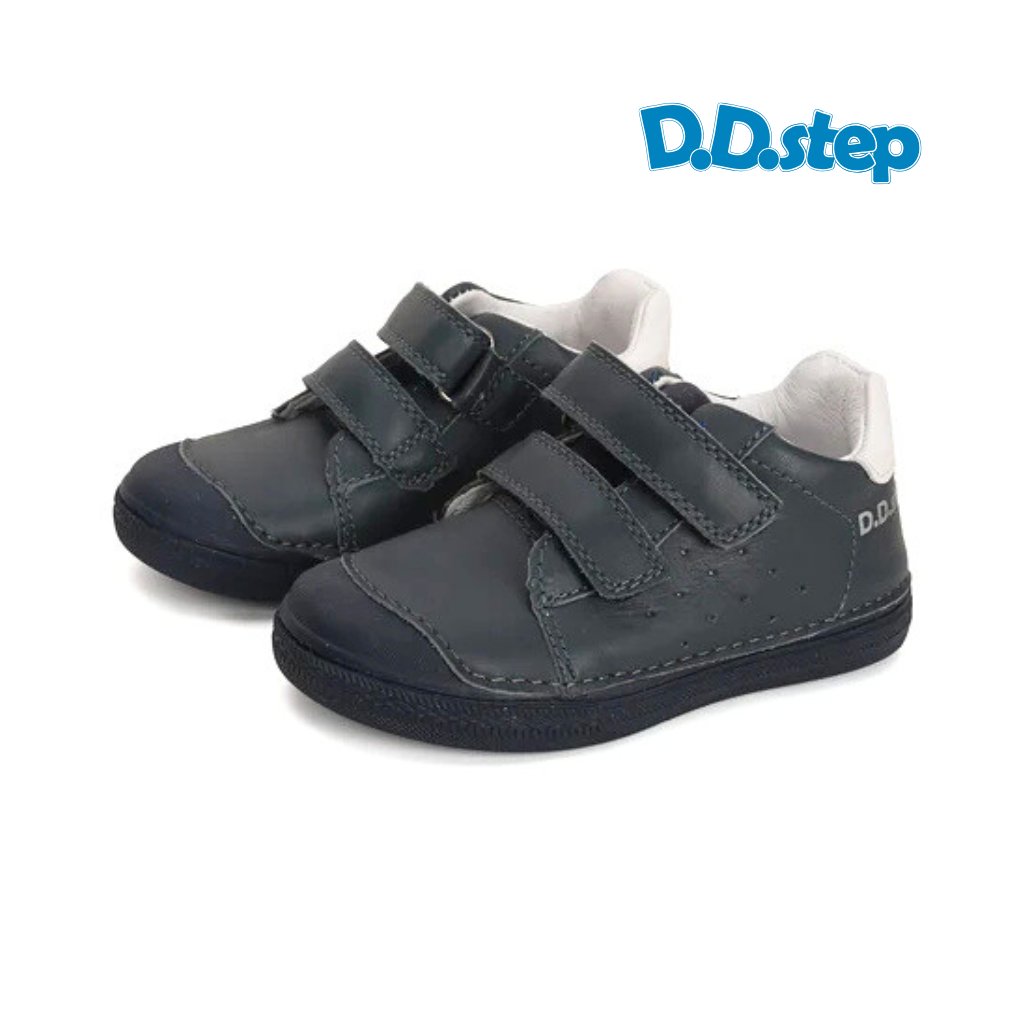 D.D. Step S049-41158 Navy sú chlapčenské kožené topánky v royal blue farbe s bielymi akcentmi na boku. Zvršok aj stielka sú z prírodnej kože – materiál, ktorý dýcha a príjemne obklopí nôžku. Mierne kotníkový strih poskytuje jemnú oporu členka.