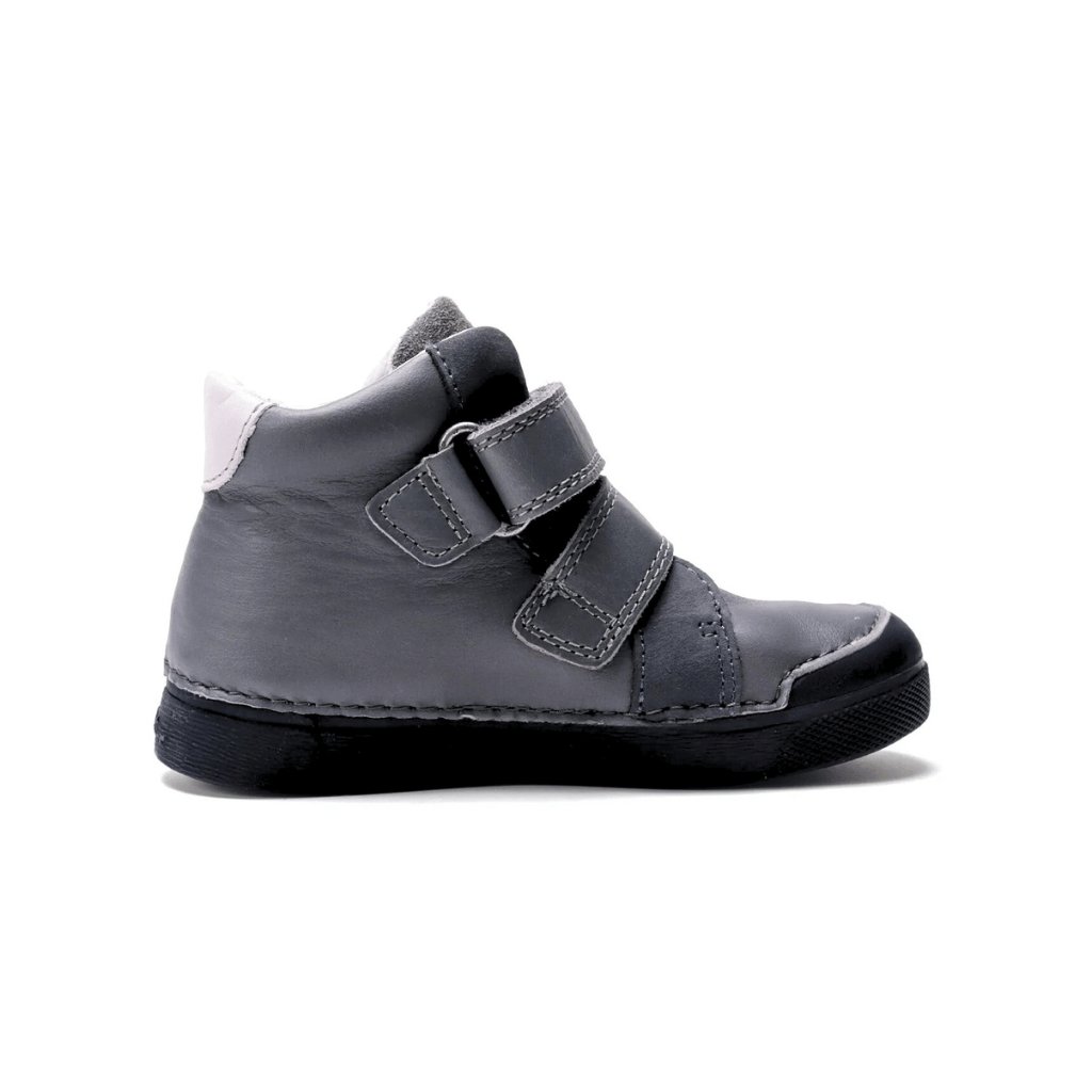 D.D.Step A068-52151 Grey – kožené detské topánky, ktoré svietia, keď chcete. LED diódy zapnete/vypnete tlačidlom pri jazyku, ohybná podrážka a vyšší členok zvládnu každý deň. Dva suché zipsy zabezpečia rýchle obúvanie a dotiahnutie topánky na nohe.
