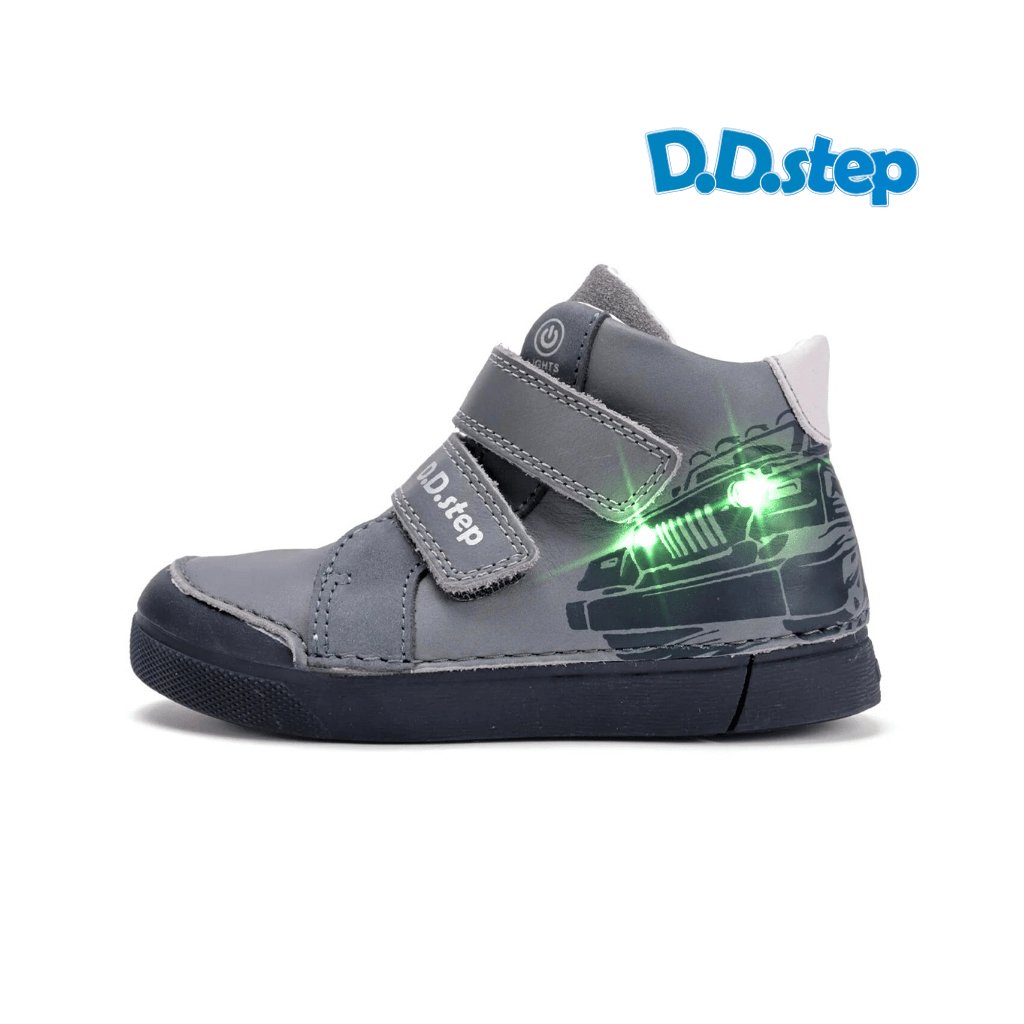 D.D.Step A068-52151 Grey – svietiace kožené topánky s LED vypínačom