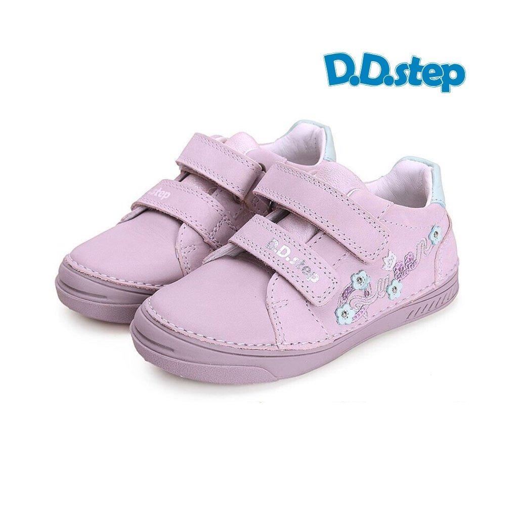 D.D. Step S070-41475 Mauve sú dievčenské kožené topánky v jemnej fialovej farbe s mätovým akcentom na päte. Bočná strana je ozdobená rozkošnou kvetinovou výšivkou s flitrami, ktorú si zamiluje každá malá módna nadšenkyňa. A za pekným dizajnom stojí aj kvalitná konštrukcia z prírodnej kože.