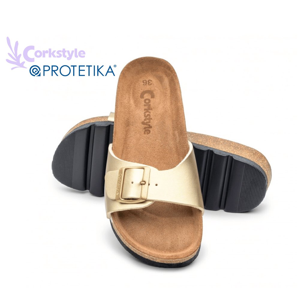 Dámske sandále Paris Corkstyle vznikli pre ženy, ktoré hľadajú spojenie komfortu a štýlu. Prémiová kolekcia CORKSTYLE stavia na nadčasovom dizajne a ortopedických riešeniach. Výrazný zvršok v trendy zlatej farbe dopĺňa kovová pracka, ktorá umožňuje presné prispôsobenie šírky.