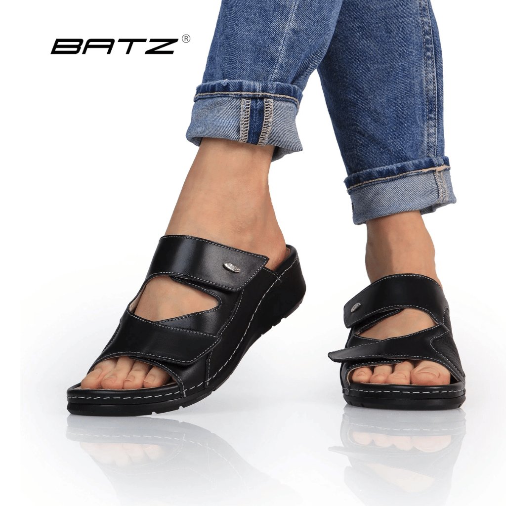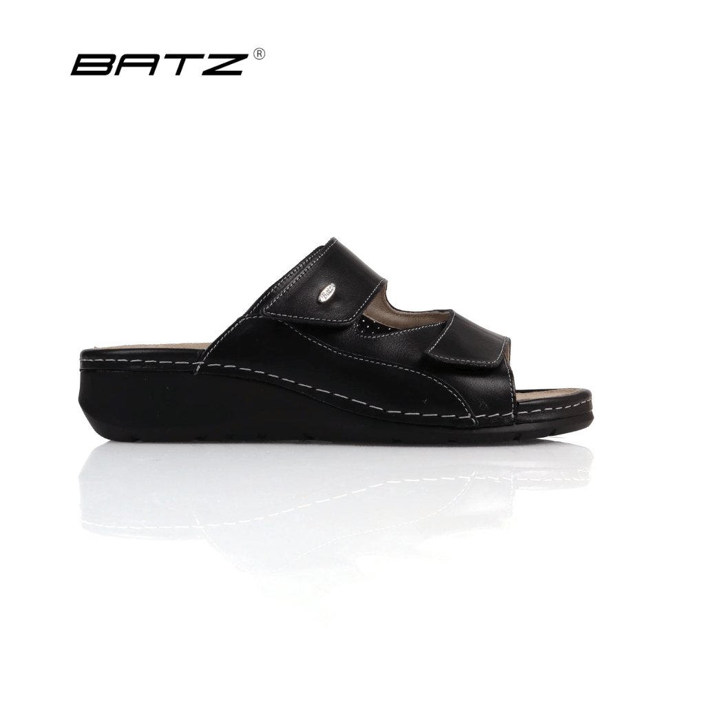 Máte halluxy a všetky topánky vás tlačia? Dámske ortopedické šľapky Batz TRUDI Black sú riešením pre všetky ženy, ktoré potrebujú viac miesta na prsty a maximálny komfort bez kompromisov.