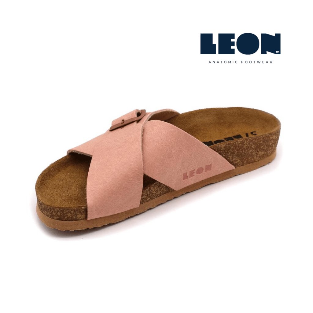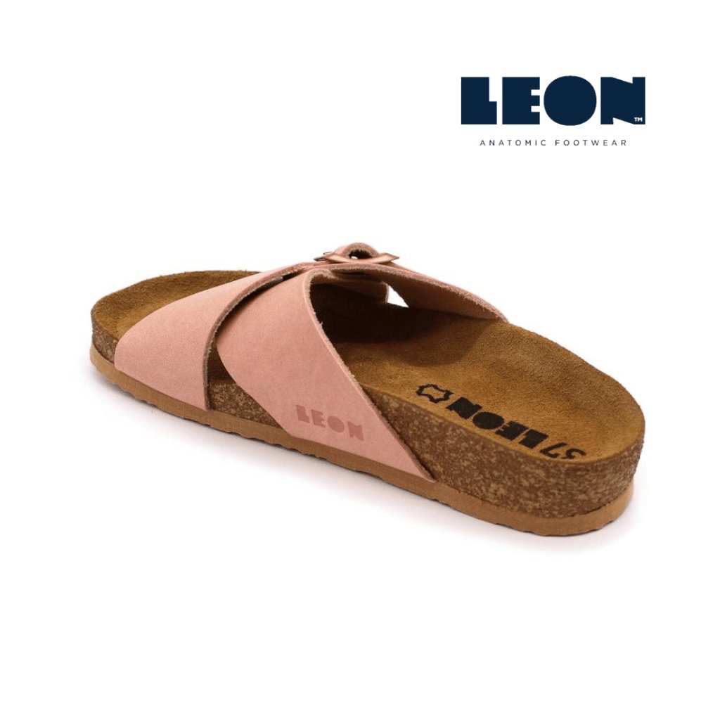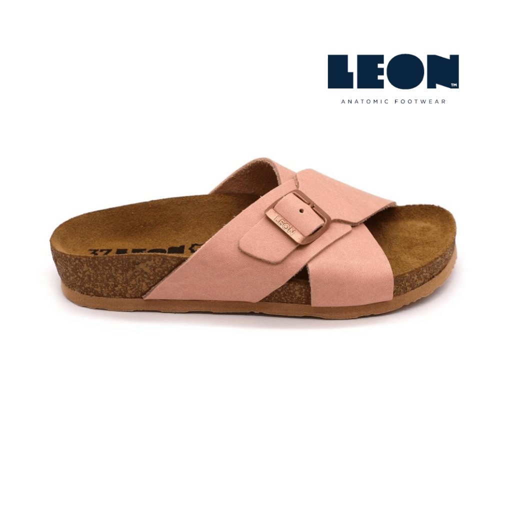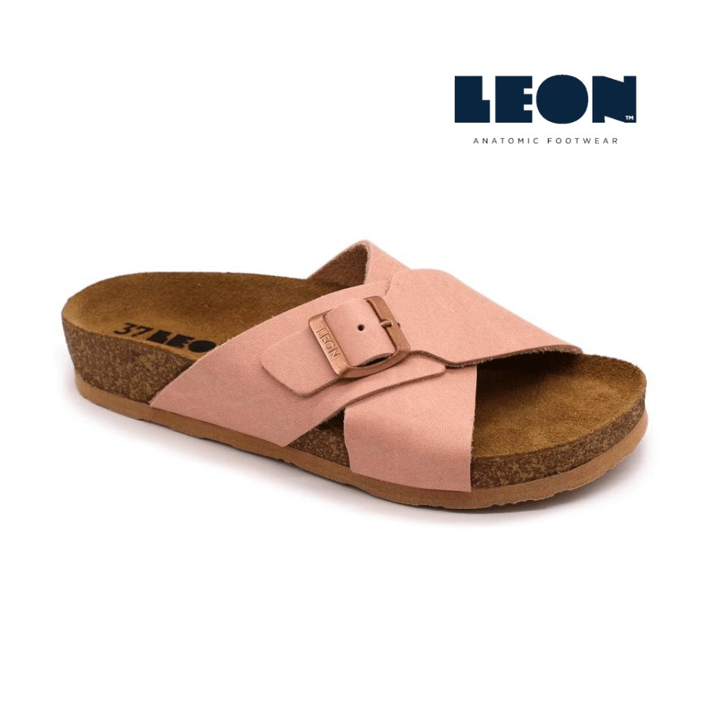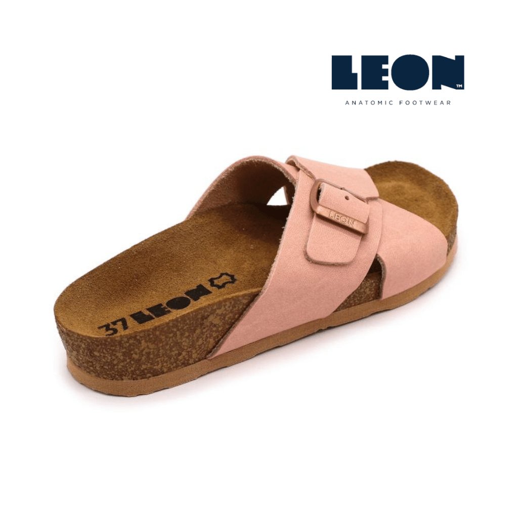 LEON 4053 sú elegantné dámske zdravotné šľapky s anatomicky tvarovanou korkovo-latexovou stielkou, ktorá jemne kopíruje klenby a podpiera pätu. Vrchné remienky sú mäkké a príjemné na dotyk, horný pásik má nastaviteľnú pracku, takže si ľahko doladíte šírku podľa seba.
