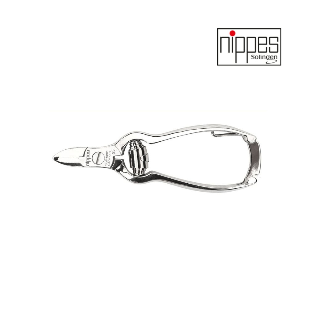 Nippes Solingen č. 23 sú profesionálne kliešte na nechty určené najmä na pedikúru a úpravu tvrdších nechtov. Majú robustnú konštrukciu, ergonomický tvar a pružinu, ktorá uľahčuje strihanie bez nadmerného tlaku. Ručne brúsené čepele zaručujú presný rez bez štiepenia nechtu. Vyrobené v nemeckom Solingene z nehrdzavejúcej ocele najvyššej kvality.