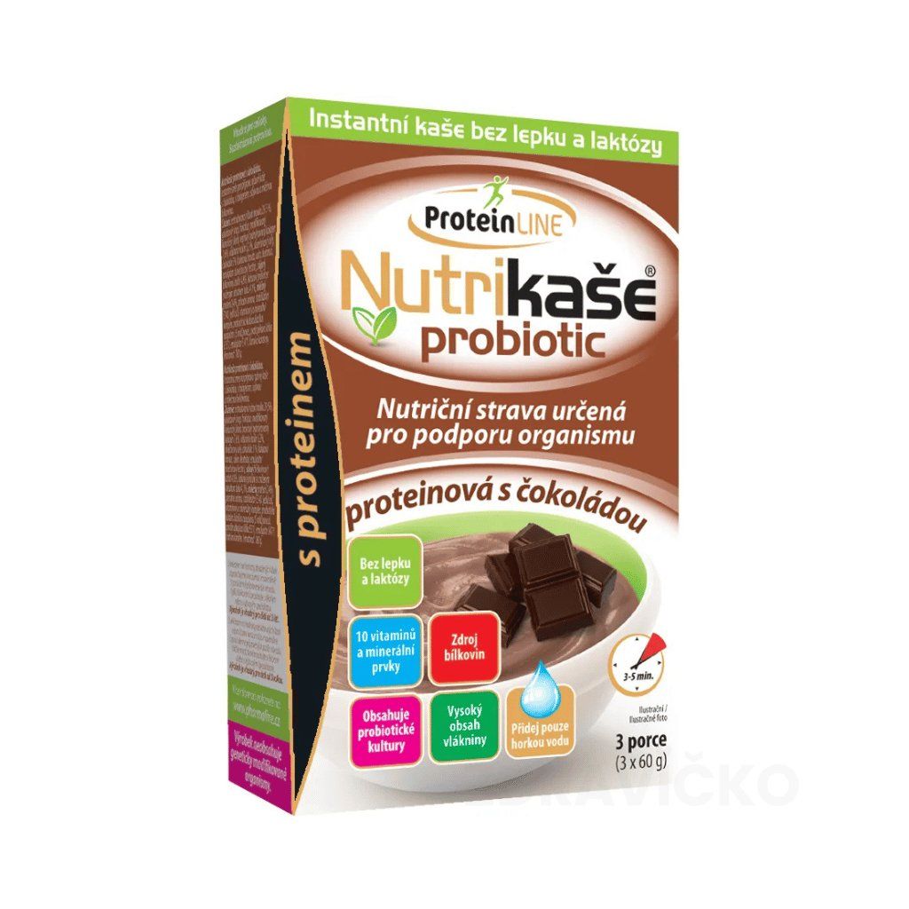 Nutrikaša probiotic s proteínom a čokoládou je chutná instantná ryžová kaša s čokoládovou príchuťou a zvýšeným obsahom bielkovín – vhodná pre celiatikov, ľudí s intoleranciou laktózy, športovcov, rekonvalescentov aj ako rýchla alternatíva raňajok, desiaty alebo večere. Základ tvorí extrudovaná ryžová múka – prirodzene bezlepková. Čokoládovú príchuť dodáva 5 % skutočnej čokolády a kakaový prášok.