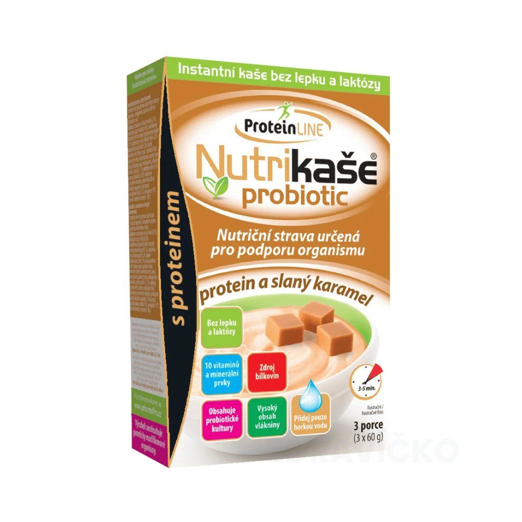 Nutrikaša probiotic protein a slaný karamel je chutná instantná ryžová kaša so zvýšeným obsahom bielkovín a výraznou karamelovou príchuťou – vhodná pre celiatikov, ľudí s intoleranciou laktózy, športovcov, rekonvalescentov aj ako rýchla alternatíva raňajok, desiaty alebo večere. Základ tvorí extrudovaná ryžová múka – prirodzene bezlepková. Kúsky karamelu z trstinového cukru a kokosového mlieka dodávajú kaši výraznosť a jemnú sladkokaramelovo-slanú chuť.