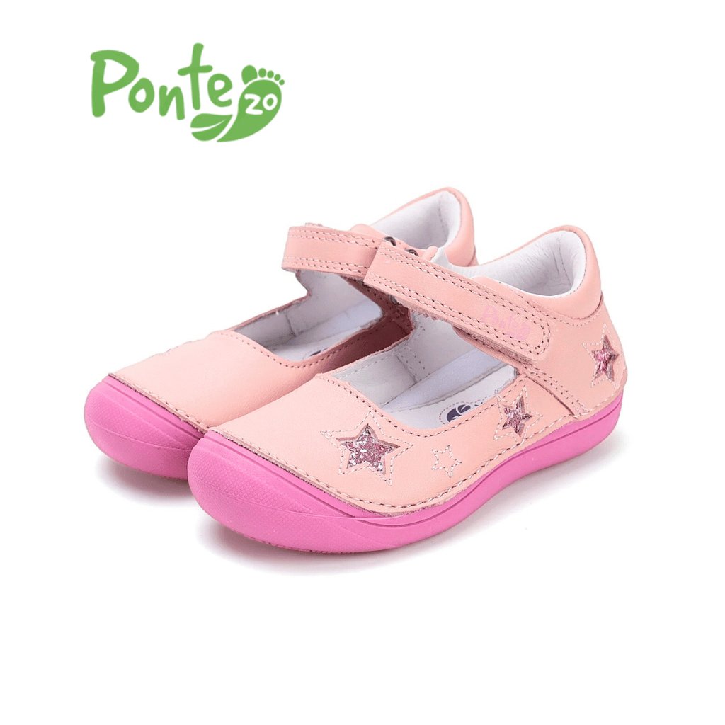 PONTE Dievčenské kožené sandálky DA08-5-1354 - ružové s hviezdičkami
