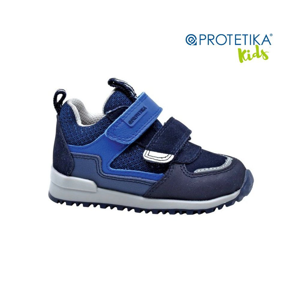 Protetika KYRO Navy sú chlapčenské jarné topánky pre deti vo veku zhruba 2–5 rokov. Kombinácia tmavomodrej semišovej kože, textilnej sieťoviny je odolná aj priedušná zároveň. Spevnená päta drží nôžku v správnej polohe, kožená stielka s podporou klenby sa stará o správny vývoj chodidla. Obúvanie s dvoma remienkami na suchý zips zvládne dieťa aj samo.