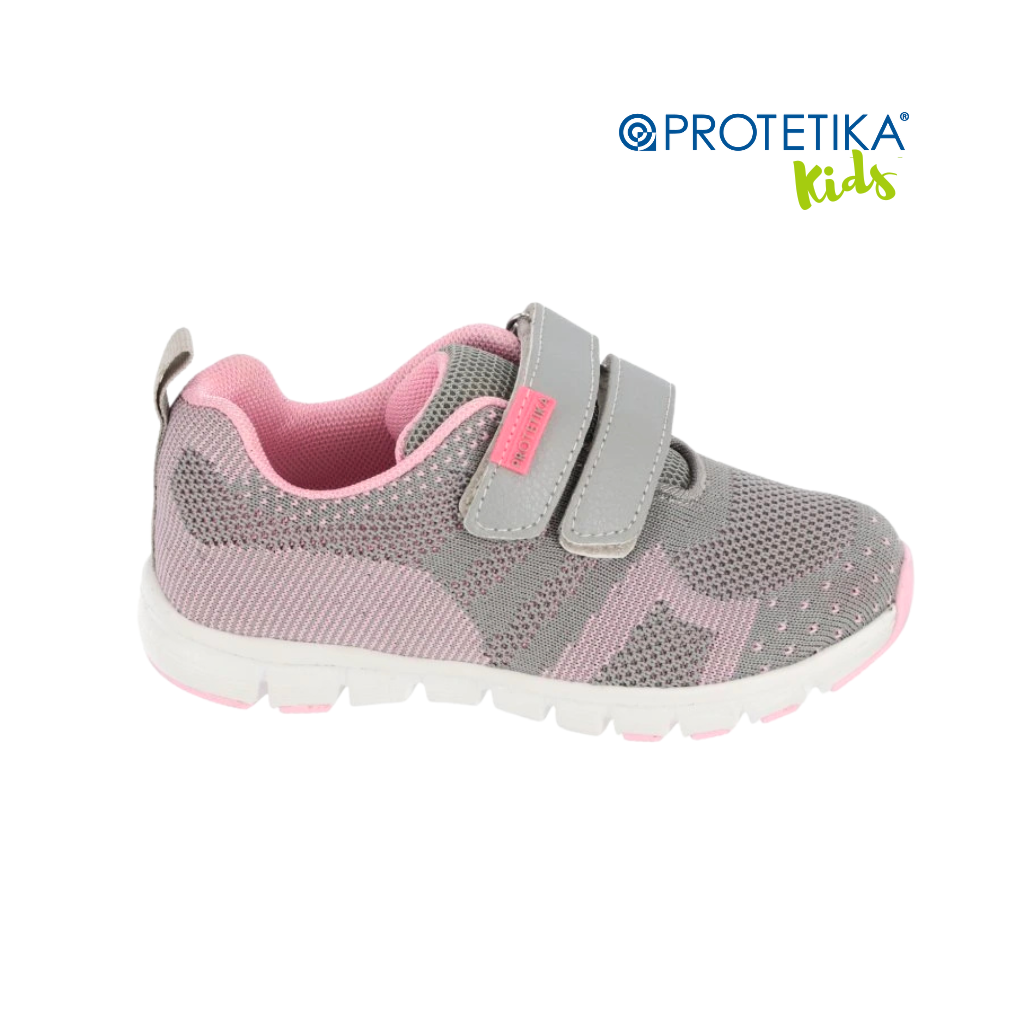 Protetika LUGO gris sú dievčenské detské tenisky určené na každodenné nosenie. Sieťovaný textilný zvršok v sivej farbe s ružovými prvkami je ľahký a dobre vetrá – nôžka sa v teplom počasí nepotí. Kľúčovou vlastnosťou je kožená stielka s podporou klenby, ktorá aktívne podporuje správny vývoj chodidla. Dva remienky na suchý zips umožňujú presné nastavenie šírky – topánka sadne na úzku aj širšiu nôžku.